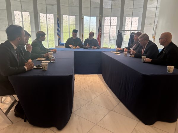 Η αντιπροσωπεία έτυχε θερμής υποδοχής από τον Πρωτοσύγκελλο της Αρχιεπισκοπής Αμερικής Θεοφιλέστατο Επίσκοπο Διοκλείας κ. Νεκτάριο, εκπροσωπώντας τον Σεβασμιώτατο Αρχιεπίσκοπο κ. Ελπιδοφόρο και τον Πρωτοπρεσβύτερο Ανδρέα Βυθούλκα ο οποίος παρουσίασε με έναν ιδιαίτερο συγκινητικό τρόπο το ιστορικό του ταξιδιού του ναού Προσκυνήματος από την καταστροφή στην ανάσταση του.