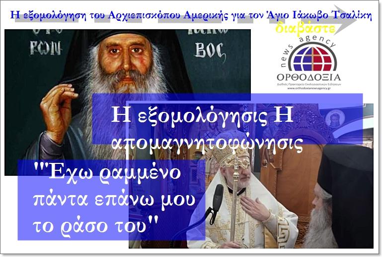 ΓΙΑ ΝΑ ΜΗΝ ΚΛΕΨΕΙ Η ΛΗΘΗ, την από καρδίας εξομολόγηση ενός Αρχιεπισκόπου, την αμέσως αναφερομένη σε έναν πολυγαπημένο σύγχρονο Άγιο της Πίστεως μας, αλλά, κυρίως, για να μην κλέψει ο μετέπειτα καιρός την προσωπική, καταλυτική συμβολή του νέου Αρχιεπισκόπου Αμερικής, κ. Ελπιδοφόρου, προς την επιτάχυνση της αγιοκατάταξης του Αγίου Ιακώβου του Τσαλίκη, το ΠΡΑΚΤΟΡΕΙΟ «ΟΡΘΟΔΟΞΙΑ» έρχεται να σταθεί, βήμα προς βήμα, ενώπιον της δημοσίας εξομολογήσεως του Σεβασμιωτάτου Αμερικής, κατά την πρόσφατη επίσκεψη του στην Ιερά Μονή Οσίου Δαυίδ Ευβοίας (πριν την αναχώρηση του για την επίσημη Ενθρόνιση του στις ΗΠΑ), την οποία και απομαγνητοφωνεί, τη διασώζει πλέον γραπτώς και ταξινομημένη, οπότε και την παραδίδει με χαρά προς σύντομη ανάγνωση διαδικτυακώς προς το ευσεβές χριστεπώνυμο πλήρωμα.