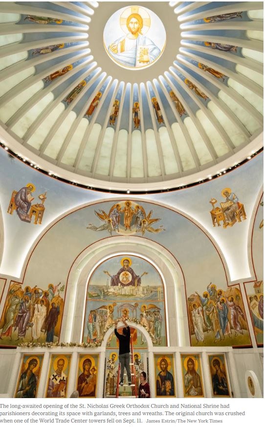 “Η εκκλησία του Αγίου Νικολάου που «εξαφανίστηκε» την 11η Σεπτεμβρίου επέστρεψε στη Νέα Υόρκη, αναφέρει η εφημερίδα υπογραμμίζοντας ότι ο Άγιος Νικόλαος έχει μετατραπεί σε εθνικό ιερό, εθνικό παρεκκλήσι που μνημονεύει τους σχεδόν 3.000 ανθρώπους που έχασαν τη ζωή τους πριν από 21 χρόνια. “Η Ελληνορθόδοξη Εκκλησία του Αγίου Νικολάου και το Εθνικό Παρεκκλήσι, όπως ονομάζεται πλέον, έχει γίνει προορισμός για όλους. Προσφέρει ένα κέντρο πένθους που θα χρησιμεύσει ως χώρος διαλογισμού και προσευχής για ανθρώπους κάθε πίστης”, αναφέρεται μεταξύ άλλων στο δημοσίευμα.