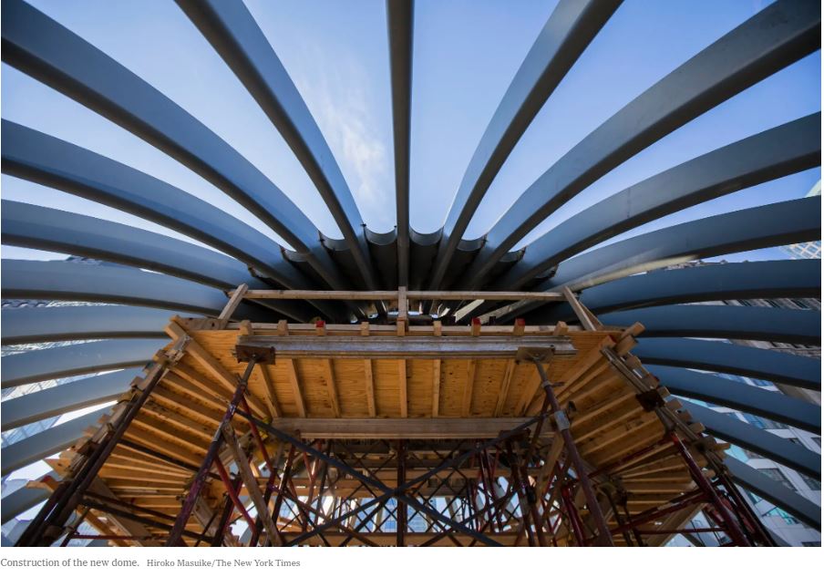 Ο Σαντιάγο Καλατράβα, ο ισπανικής καταγωγής αρχιτέκτονας που σχεδίασε τον σύγχρονο σιδηροδρομικό σταθμό και το εμπορικό κέντρο που μοιάζει με πουλί, γνωστό ως Oculus, έφτιαξε ένα σχέδιο για μια θολωτή κατασκευή 12.000 τετραγωνικών μέτρων με τέσσερις γωνιακούς πύργους, αντλώντας έμπνευση από τη βυζαντινή τέχνη και αρχιτεκτονική. Όταν φωτίζεται από μέσα τη νύχτα, ο θόλος θα λάμπει «σαν κερί» είπε.