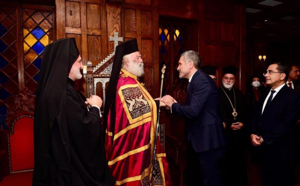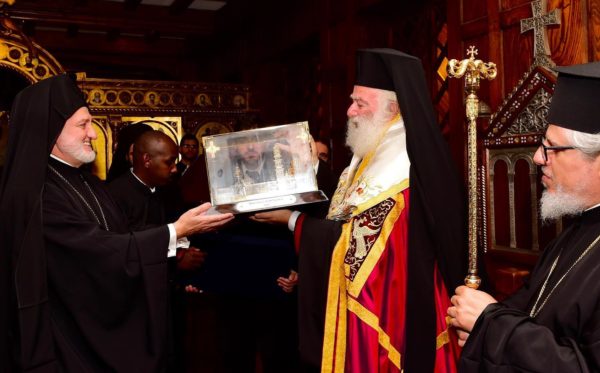 Ο Πατριάρχης κ.κ. Θεόδωρος εξέφρασε τις εγκάρδιες ευχαριστίες του προς τον Αρχιεπίσκοπο, λέγοντας: «Άνοιξες την πόρτα της καρδιάς σου και με δέχθηκες σήμερα». Παρέδωσε επίσης στον Σεβασμιώτατο αντίγραφο του καθεδρικού ναού του Αγίου Γεωργίου στο Κάιρο, το «όνειρο της ζωής μου», όπως το χαρακτήρισε, καθώς και ένα αντίστοιχο με τον ομώνυμο καθεδρικό ναό στο Φανάρι.