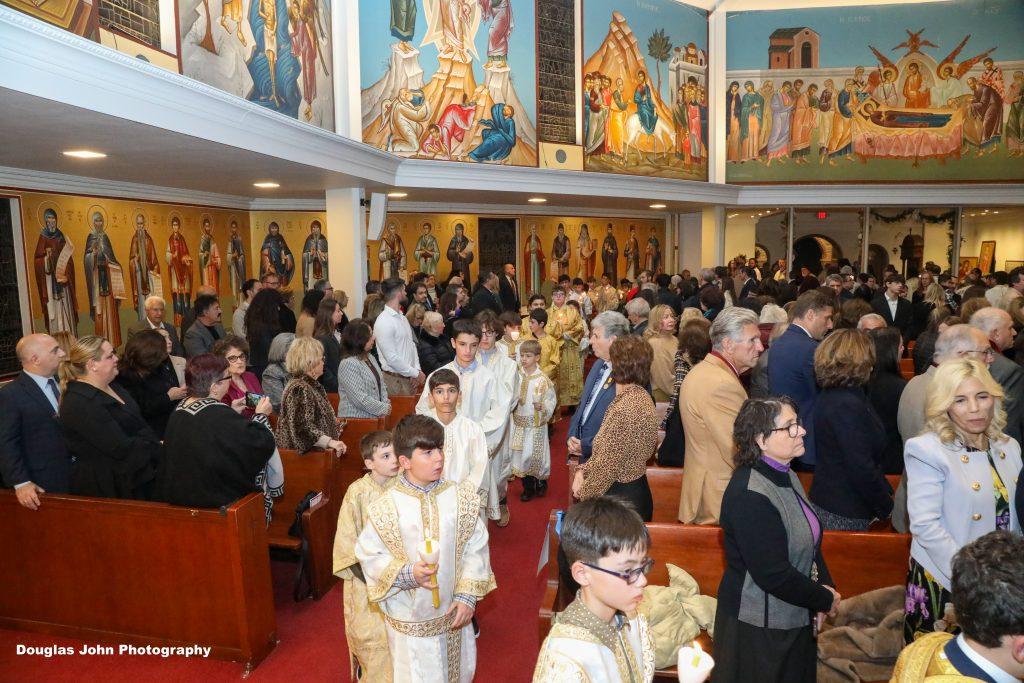 Πριν από την απόλυση, ο Σεβασμιώτατος συγκέντρωσε τους περίπου σαράντα πέντε ιερόπαιδες που είχαν προσέλθει να διακονήσουν στη πανηγυρική ακολουθία και τους προσέφερε έναν ειδικό σταυρό για να φορούν κατά τη διακονία τους στο ιερό βήμα. Ευχαρίστησε θερμά τα παιδιά για την παρουσία τους και τα ενθάρρυνε να συνεχίσουν να αυξάνουν στην προσφορά τους προς τον Κύριο. Απηύθυνε επίσης ευχαριστίες στους γονείς και τους παππούδες τους για την προσπάθειά τους να ανατρέφουν τα παιδιά εντός της Εκκλησίας και για την φροντίδα να τα κρατούν στον γαλήνιο λιμένα που προσφέρει η Εκκλησία.