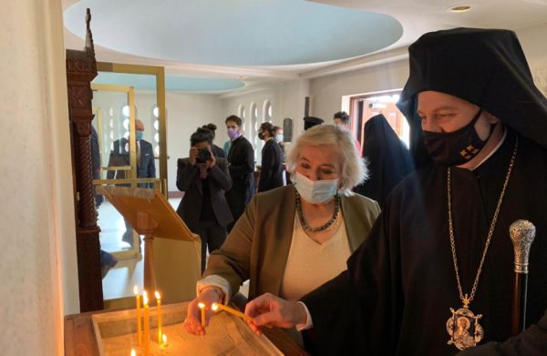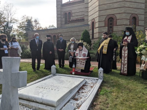 Νωρίτερα ο Αρχιεπίσκοπος Αμερικής κ. Ελπιδοφόρος συνοδευόμενος από την πρέσβη τέλεσε Τρισάγιο στον τάφο του μακαριστού Αρχιεπισκόπου Αμερικής κυρού Ιακώβου, ο οποίος βρίσκεται όπισθεν τους Ιερού Βήματος του παρεκκλησίου του Τιμίου Σταυρού της Θεολογικής Σχολής.