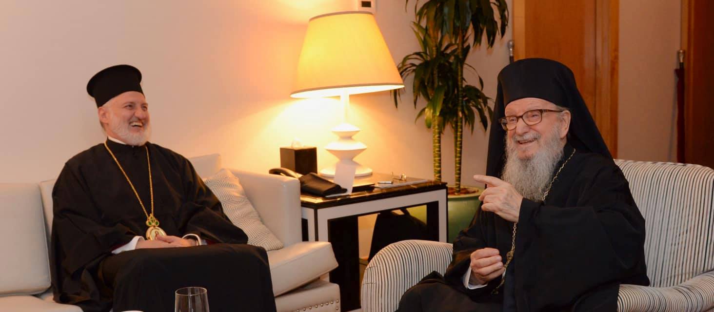 Αμέσως μετά την άφιξή του στο ξενοδοχείο όπου κατέλυσε, ο νέος Αρχιεπίσκοπος Αμερικής κ. Ελπιδοφόρος συναντήθηκε με τον προκάτοχό του, Αρχιεπίσκοπο Γέροντα πρώην Αμερικής Δημήτριο.
