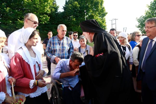 Το απόγευμα του Σαββάτου πραγματοποιήθηκε η επίσημη υποδοχή του Σεβασμιωτάτου Αρχιεπισκόπου Αμερικής στον προαύλιο χωρο του Ιερού Ναού Μεταμορφώσεως του Σωτήρος Νέας Πέλλας από τον οικείο ποιμενάρχη Μητροπολίτη Εδέσσης, Πέλλης και Αλμωπίας, κ. Ιωήλ, τους ιερείς, τις τοπικές αρχές, το Σωματείο Ελλήνων παραδοσιακών χορών Λυγκηστές και τον μορφωτικό πολιτιστικό σύλλογο νέας Πέλλας.