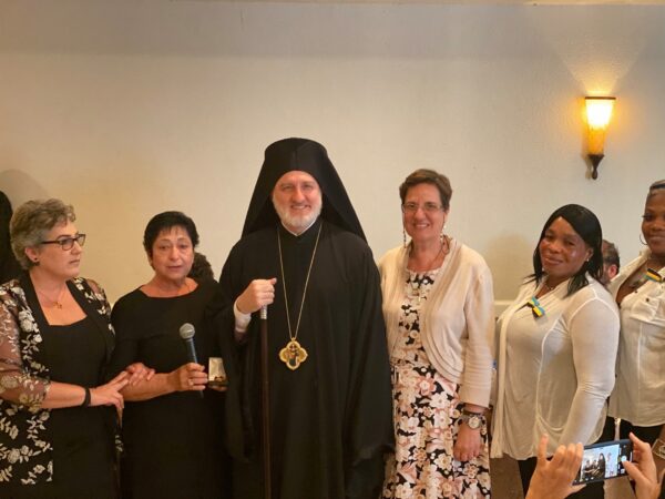 Ιδιαίτερα συγκινητική ήταν η στιγμή κατά την οποία ο Σεβ. Αρχιεπίσκοπος κ. Ελπιδοφόρος παρέδωσε στον προϊστάμενο της Ενορίας το ποσό που συγκεντρώθηκε από τον έρανο που διεξήγαγε η Αρχιεπισκοπή Αμερικής για την στήριξη των πληγέντων.