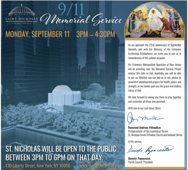 Ο Μητροπολίτης Νέας Ιερσέης κ. Απόστολος θα προεξάρχει στο μνημόσυνο που θα τελεστεί για τα θύματα της τρομοκρατικής επίθεσης της 11 Σεπτεμβρίου 2001 με αφορμή την 22η δεύτερη επέτειο.