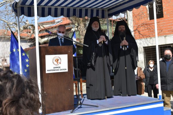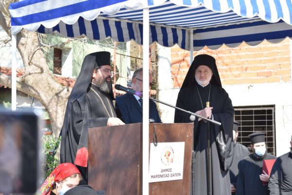 Νωρίτερα, τον Σεβασμιώτατο Αρχιεπίσκοπο Αμερικής κ. Ελπιδοφόρο υποδέχθηκε και καλωσόρισε θερμά στην ιστορική κωμόπολη ο δήμαρχος Μαρώνειας – Σαπών, Ντίνος Χαριτόπουλος και τον ευχαρίστησε για την ιδιαίτερη τιμή που επεφύλαξε στους Μαρωνείτες.
