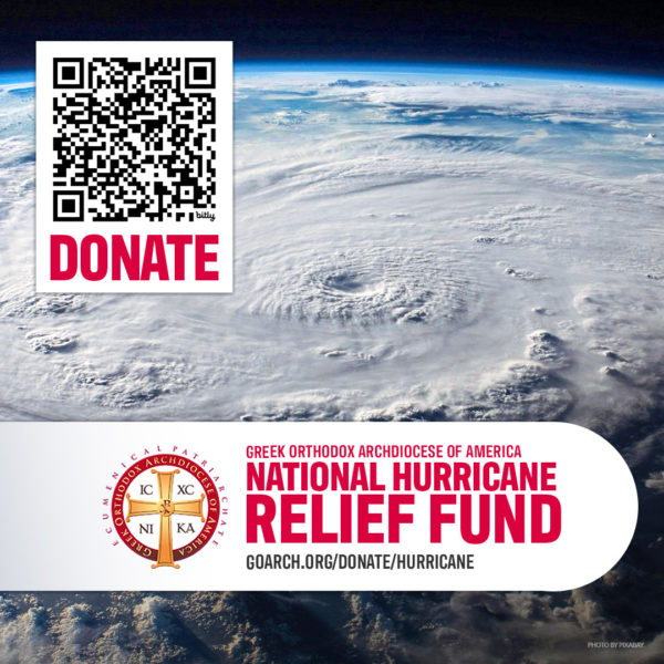 Η Αρχιεπισκοπή παρακαλεί όπως όλα τα χρήματα που συγκεντρώνονται από τους δίσκους και τη γενναιοδωρία των ενοριών ή των οργανώσεών μας να κατευθύνονται στο www.goarch.org/donate/hurricane.