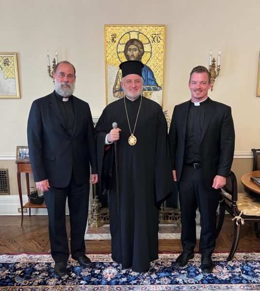 O νεοδιορισθείς Κοσμήτορας Φοιτητών της Θεολογικής Σχολής του Τιμίου Σταυρού Βοστώνης Αιδεσιμολογιότατος π. Πατρίκιος Ο’Ρουρκ επισκέφθηκε τον Σεβασμιώτατο Αρχιεπίσκοπο Αμερικής κ. Ελπιδοφόρο στην έδρα της Αρχιεπισκοπής στη Νέα Υόρκη την Δεύτερα 12 Ιουνίου 2023.