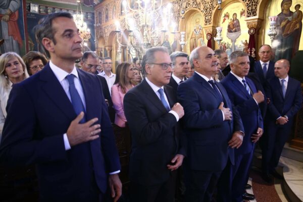 Στη Θεία Λειτουργία παραβρέθηκαν ο Αρχηγός της Αξιωματικής Αντιπολίτευσης κ. Κυριάκος Μητσοτάκης, ο Υφυπουργός Εξωτερικών κ. Μάρκος Μπόλαρης.