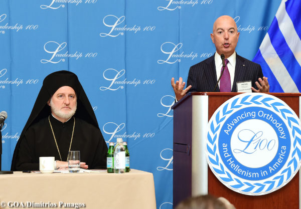 Ο Σεβ. Αρχιεπίσκοπος Αμερικής κ. Ελπιδοφόρος (αριστερά) και ο Άρχων κ. Μιχαήλ Ψαρός (δεξιά) – Φωτογραφία: GOA/Dimitrios Panagos