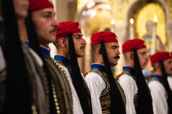 Στέκονται προσοχή -όπως πρέπει επίσης να κάνουμε κι εμείς, αν θέλουμε να διατηρήσουμε την ελευθερία μας εν Χριστώ, που έρχεται μέσω της ενσάρκωσης, και τις ευλογίες της ελευθερίας, που είναι το όφελος της ζωής στις δημοκρατικές μας δημοκρατίες. Υπάρχει λόγος που καθ ‘όλη τη διάρκεια της Θείας Λειτουργίας ακούμε τους διακόνους να λένε:” Πρόσχωμεν!” Είναι για να προσκαλέσουμε τη σκόπιμη εξέταση και συγκέντρωσή μας στο μήνυμα της στιγμής – είτε με λόγια είτε με πράξεις. Ως εκ τούτου, καθώς οι Εύζωνες στέκονται προσοχή, μας εμπνέουν να το κάνουμε και στις καρδιές και στο μυαλό μας.