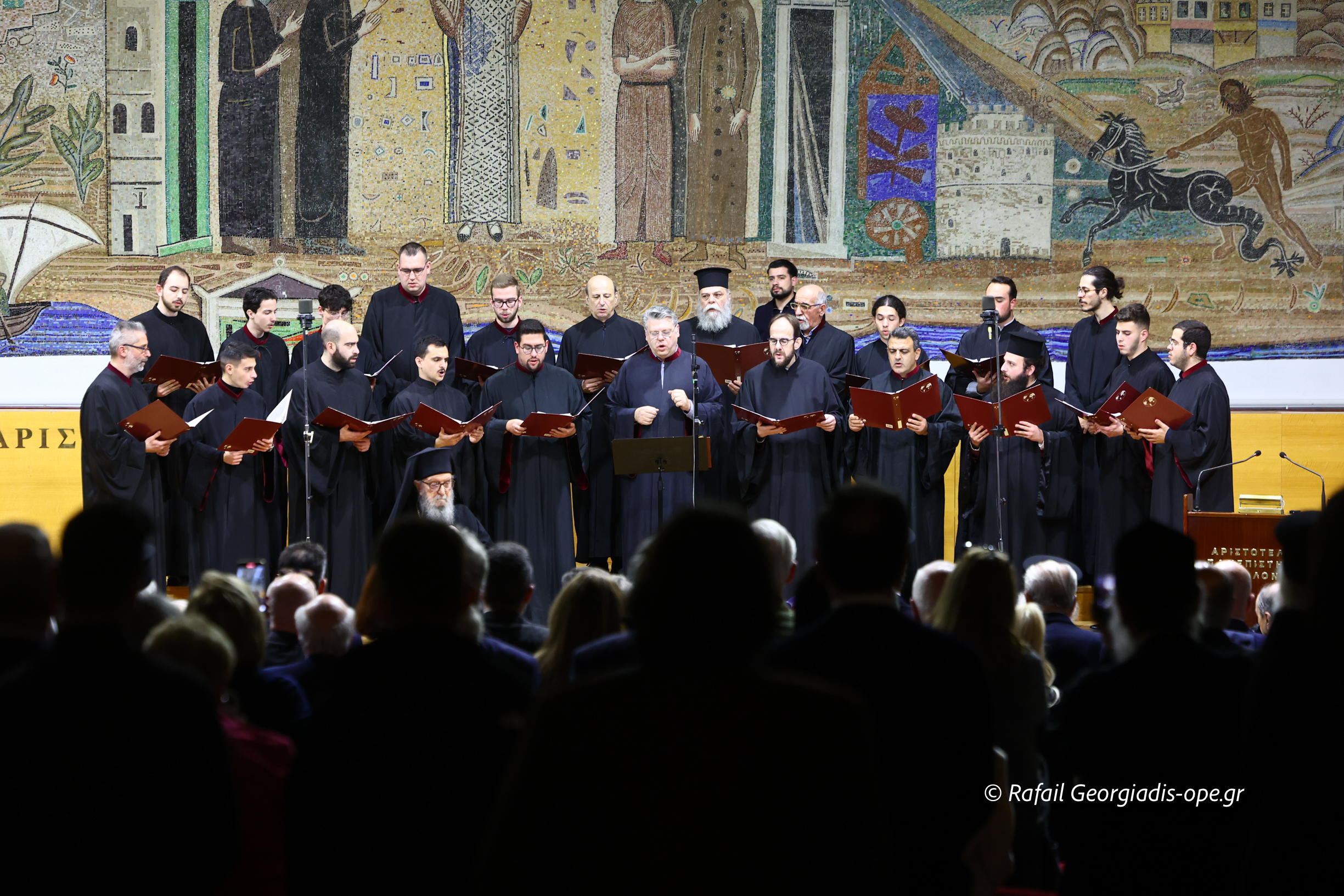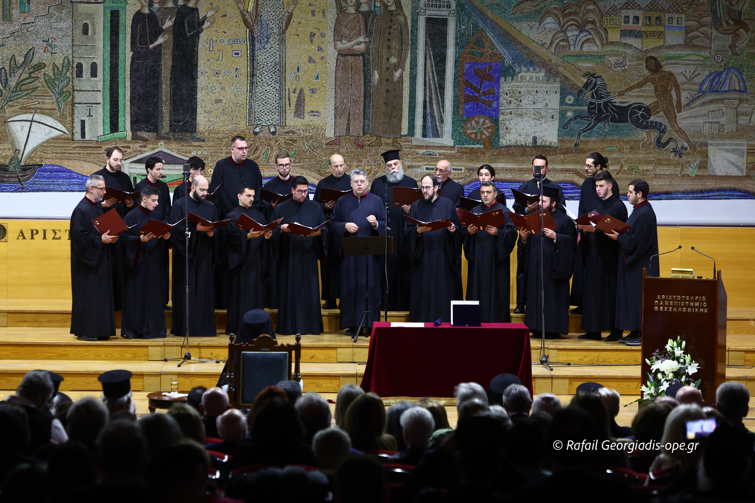 Ακολούθησε ο πολυχρονισμός του τιμώμενου από τη Χορωδία της Θεολογικής Σχολής «Τρεις Ιεράρχες», υπό τη διεύθυνση του αναπληρωτή καθηγητή Ιωάννη Λιάκου, προσδίδοντας ιδιαίτερη τελετουργική και κατανυκτική ατμόσφαιρα στην εκδήλωση.