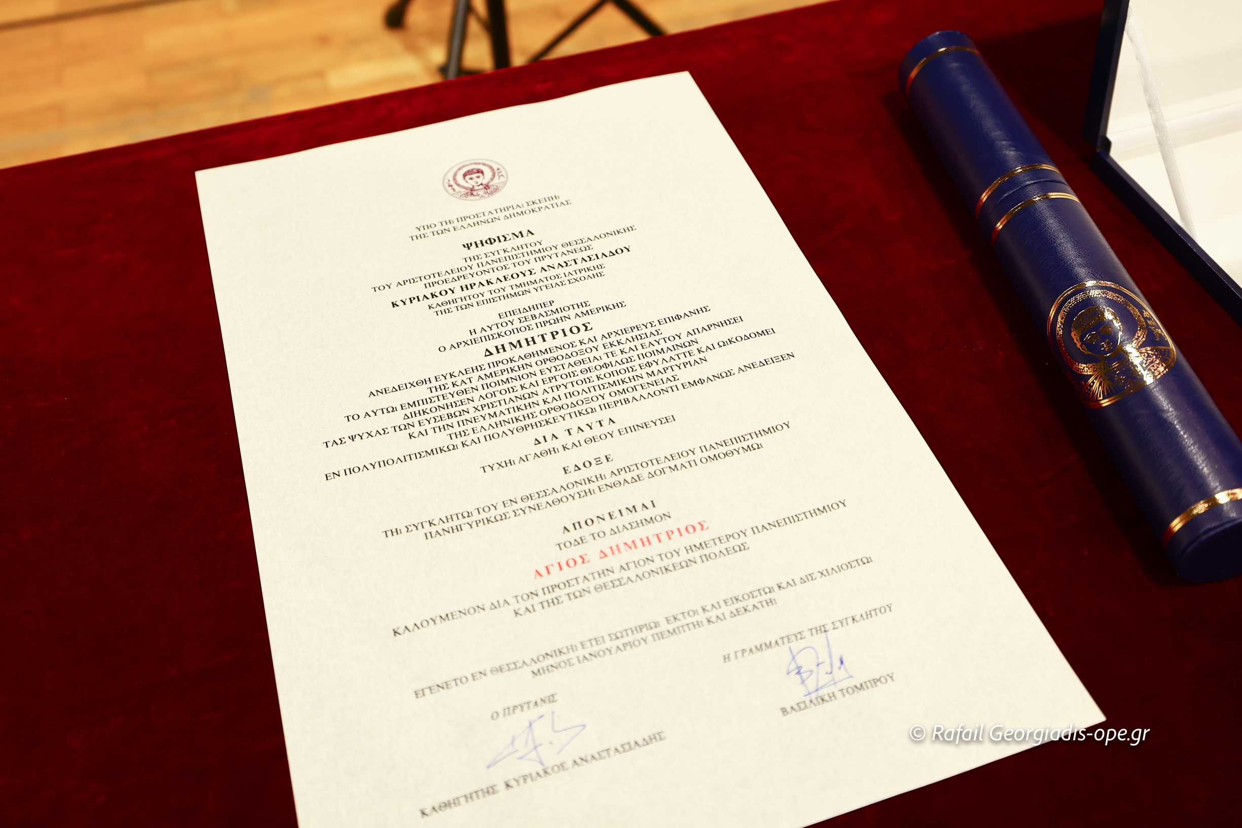 15/01/2026 15/01/2026 Σε κλίμα ιδιαίτερης συγκίνησης και υψηλού συμβολισμού πραγματοποιήθηκε το βράδυ της Πέμπτης 15 Ιανουαρίου 2026, στην Αίθουσα Τελετών του Αριστοτελείου Πανεπιστημίου Θεσσαλονίκης, η απονομή της Ειδικής Τιμητικής Διάκρισης του Εμβλήματος «Άγιος Δημήτριος» στον Σεβασμιώτατο Αρχιεπίσκοπο πρώην Αμερικής κ. Δημήτριο, έπειτα από απόφαση της Συγκλήτου του Πανεπιστημίου.   Φωτορεπορτάζ ope.gr: Ραφαήλ Γεωργιάδης   Με την απονομή...