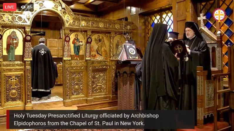ΝΕΑ ΥΟΡΚΗ – Παρακολουθήστε την Προηγιασμένη Θεία Λειτουργία της Μεγάλης Τρίτης πρωϊας υπό του Σεβασμιωτάτου Αρχειπισκόπου Αμερικής κ. Ελπιδοφόρου: