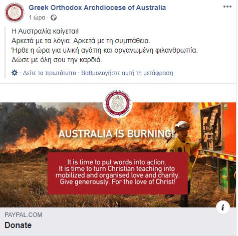 “Η Αυστραλία καίγεται! Αρκετά με τα λόγια. Αρκετά με τη συμπάθεια” αναφέρει η Αρχιεπισκοπή Αυστραλίας σε επίκαιρη ανάρτησή της.