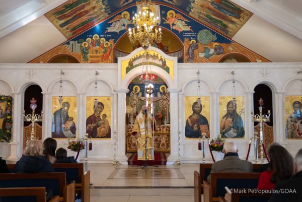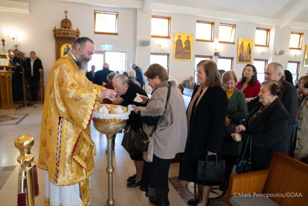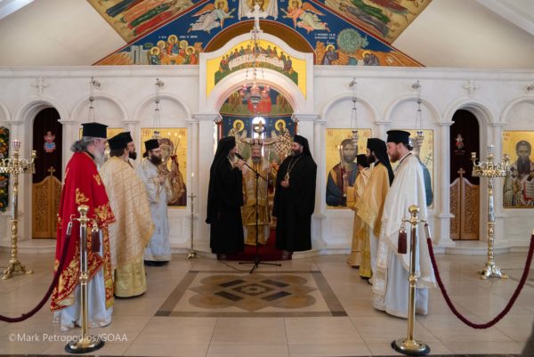 Εν πληθούση εκκλησία, ο Σεβασμιώτατος προεξήρχε της πανηγυρικής Θείας Λειτουργίας, πλαισιούμενος απότους Θεοφιλεστάτους Επισκόπους Μιλητουπόλεως κ. Ιάκωβο, Κυανέων κ. Ελπίδιο και Χαριουπόλεως κ. Βαρθολομαίο, τον Πρωτοσύγκελλο της Ιεράς Αρχιεπισκοπής, Πανοσιολογιώτατο Αρχιμανδρίτη του Οικουμενικού Θρόνου κ. Χριστοφόρο Κρικέλη, τον Ιερατικώς Προϊστάμενο του εορτάζοντος Ι. Νάου, π. Κωνσταντίνο Βαρυπάτη, και από άλλους ιερείς της πόλεως του Σύδνεϋ.
