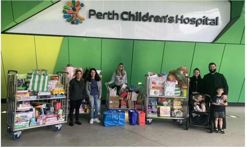 Η Ενορία Αγίων Κωνσταντίνου και Ελένης στο Πέρθ πραγματοποίησε την ετήσια χριστουγεννιάτικη δράση της για τη συγκέντρωση παιχνιδιών, με σκοπό την παροχή δωρεάς στο Νοσοκομείο Παίδων της πόλης. Τα παιχνίδια προσφέρθηκαν από τα παιδιά και τις οικογένειες της εν λόγω ενορίας.