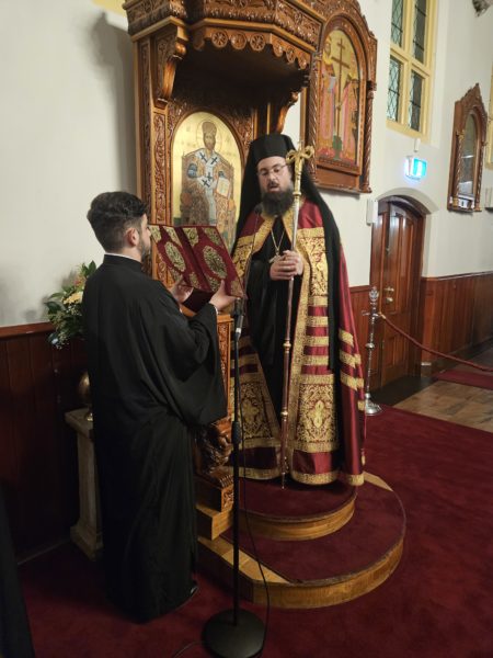 Της Θείας Λειτουργίας προεξήρχε ο Θεοφιλέστατος Επίσκοπος Χώρας κ. Ευμένιος, ο οποίος ανέγνωσε το χριστουγεννιάτικο μήνυμα του Σεβασμιωτάτου Αρχιεπισκόπου Αυστραλίας κ. Μακαρίου.