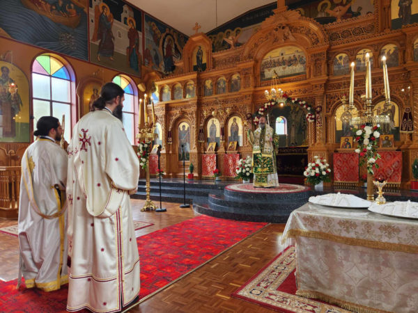 Στο τέλος της Θείας Λειτουργίας, κατά την οποία συνιερούργησε με τον Θεοφιλέστατο Επίσκοπο Χαριουπόλεως κ. Βαρθολομαίο, Αρχιεπισκοπικό Επίτροπο Καμπέρας, ο Αρχιεπίσκοπος τέλεσε ιερό Μνημόσυνο υπέρ αναπαύσεως των ψυχών των αειμνήστων Πέτρου Σάτσια και Ευστράτιου Λουκαδέλλη, κατά σάρκα πατέρων των κ.κ. Ανδρέα Σάτσια και Ιωάννη Λουκαδέλλη.