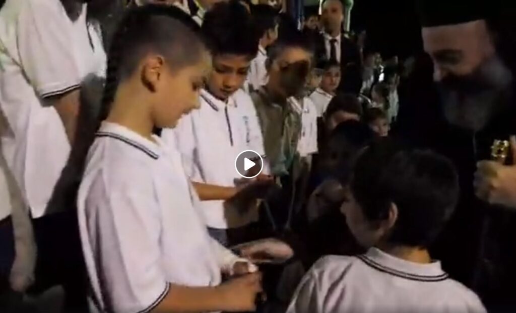 ΕΠΙΚΑΙΡΟ ΒΙΝΤΕΟ, όπου ο Σεβασμιώτατος Αρχιεπίσκοπος Αυστραλίας, κ. Μακάριος, εντοπίζει τον γύψο στο χέρι ενός μικρού παιδιού (στο σημείο 2:24), οπότε, τείνει την αρχιεπισκοπική χείρα του, ευλογεί την μικρά παροδική “περιπέτεια” του παιδιού, και, συνεχίζει με χαρά την επίσκεψή του.