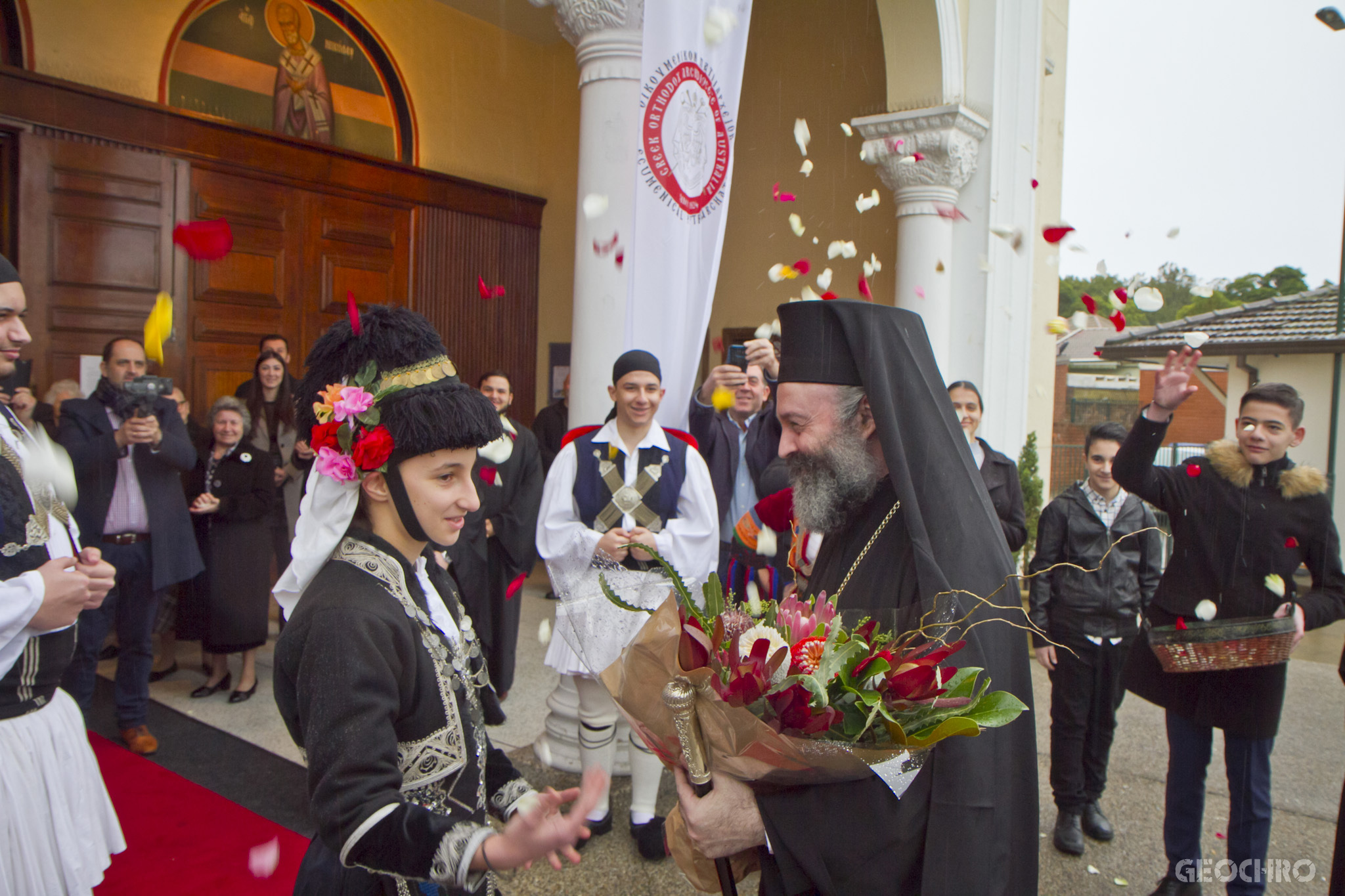 Την Κυριακή, 21 Ιουνίου, Β’ Ματθαίου, ο Σεβασμιώτατος Αρχιεπίσκοπος Αυστραλίας κ. Μακάριος μετέβη στον Ιερό Ναό του Αγίου Νικολάου, στο Μάρρικβιλ του Σύδνεϋ, όπου χοροστάτησε κατά την Ακολουθία του Όρθρου και προεξήρχε της Θείας Λειτουργίας. Οι πιστοί της ενορίας, ανάμεσά τους πολλοί νέοι με παραδοσιακές ελληνικές φορεσιές, επιφύλαξαν θερμή και συγκινητική υποδοχή στον Σεβασμιώτατο. Εκδηλώνοντας την αγάπη και το σεβασμό που τρέφουν για τον Ποιμενάρχη τους, κατά την άφιξή του στον ναό τον καλωσόρισαν ραίνοντάς τον με ροδοπέταλα και φωνάζοντας επαναλαμβανόμενα “σε αγαπάμε”, καθώς και την ιαχή “Άξιος”.