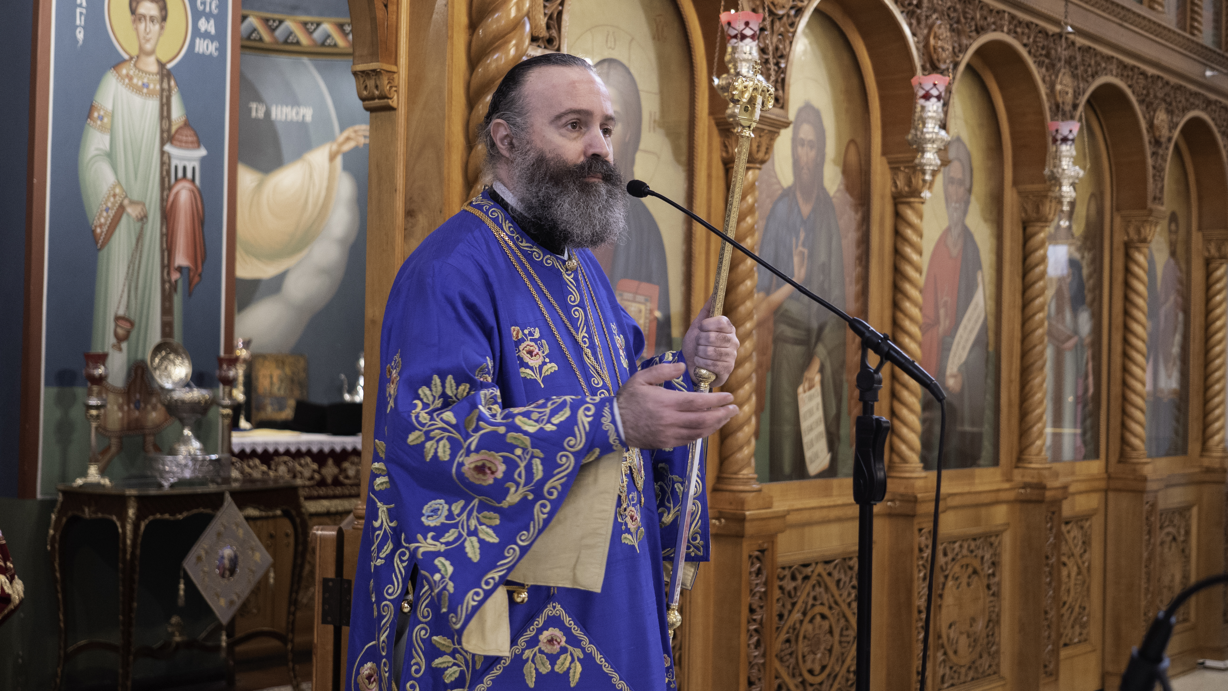 Προ της Απολύσεως της Θείας Λειτουργίας, ο Σεβασμιώτατος κ. Μακάριος συνεχάρη και απηύθυνε θερμές πατρικές ευχές προς τον Ιερατικώς Προϊστάμενο του Ναού, Πανοσιολογιώτατο Αρχιμανδρίτη κ. Χριστόδουλο Οικονόμου, ο οποίος συμπλήρωσε 20 χρόνια ιερωσύνης. “Τα 20 χρόνια ιερωσύνης ειναι μια μεγάλη υπόθεση για έναν νέο άνθρωπο”, υπογράμμισε, ενώ συμπλήρωσε ότι αποτελεί μεγάλη χαρά και ευλογία για την Ιερά Αρχιεπισκοπή Αυστραλίας που έχει στο δυναμικό της τον πατέρα Χριστόδουλο. “Δεν είναι εύκολο περιγράψω το πόσο δύσκολο είναι κανείς, ιδιαίτερα όταν είναι νέος, να κρατήσει το ράσο του ακηλίδωτο”, επισήμανε και συνέχισε: “Γι’ αυτό, όταν βλέπω κληρικούς σαν τον πατέρα Χριστόδουλο και τους άλλους πατέρες που είναι εδώ, οι οποίοι αγωνίζονται στη ζωή με τις δυσκολίες, τις πιέσεις, τις προκλήσεις, όταν βλέπω κληρικούς να έχουν τιμήσει το ράσο τους, ιδιαιτέρως συγκινούμαι. Και δοξάζω τον Θεό που έχουμε κληρικούς σαν τον πατέρα Χριστόδουλο, και εύχομαι να αποκτήσουμε και ακόμα περισσότερους”.