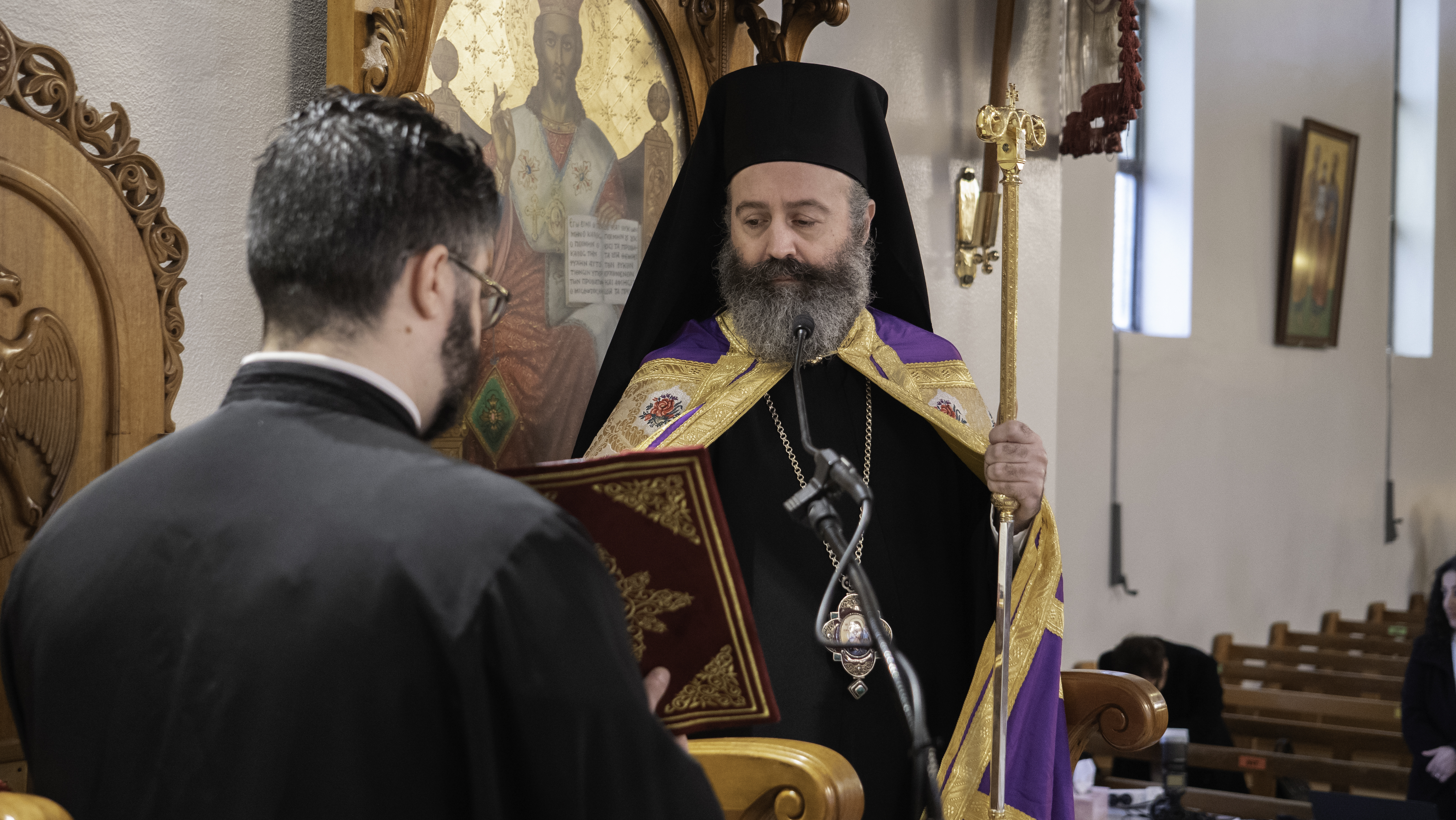 Ακολούθως, κάλεσε τους πιστούς να αναφωνήσουν όλοι μαζί “Άξιος” για τον προϊστάμενο της ενορίας τους, ενώ ο ίδιος, αφού ευχήθηκε εις ανώτερα, του δώρισε ένα Ευαγγέλιο “για να αποτελεί οδοδείκτη στην πορεία του και στη μετέπειτα ζωή του”.
