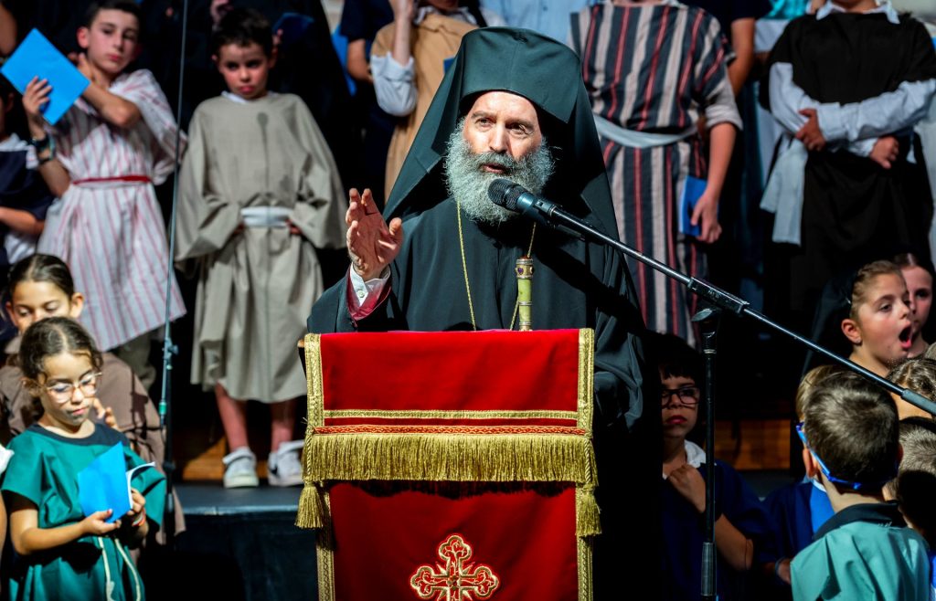 Κατά τον χαιρετισμό του, ο Σεβασμιώτατος κ.κ. Μακάριος σκιαγράφησε την ιερή αποστολή του Κατηχητικού Σχολείου, υπογραμμίζοντας μεταξύ άλλων: «Δεν είναι μόνο ένα μέρος όπου μαθαίνετε ιστορίες από την Αγία Γραφή. Είναι επίσης ένα μέρος όπου μαθαίνετε πώς να ζείτε ως παιδιά του Θεού. Πώς να προσεύχεστε. Πώς να συγχωρείτε. Πώς να αγαπάτε τον Χριστό με όλη σας την καρδιά».