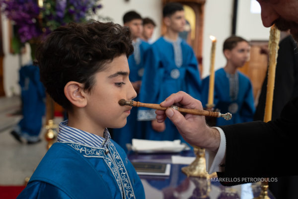 Τη Μεγάλη Τετάρτη, 16 Απριλίου, ο Σεβασμιώτατος Αρχιεπίσκοπος Αυστραλίας κ. Μακάριος τέλεσε το ιερό Μυστήριο του Ευχελαίου στον Ιερό Ναό του Αγίου Σπυρίδωνος, στο Kingsford του Σύδνεϋ, συμπαραστατούμενος από τους κληρικούς της Ενορίας, π. Στυλιανό Σκούτα και π. Σταύρο Ιβανό.