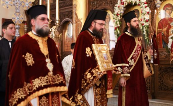 Σε κλίμα συγκίνησης, στον κατάμεστο από πιστούς Ιερό Ναό, τελέστηκε η πανηγυρική Θεία Λειτουργία προεξάρχοντος του Σεβασμιωτάτου κ. Μακαρίου και συλλειτουργούντων των Θεοφιλεστάτων Επισκόπων Σωζοπόλεως κ. Κυριακού και Κερασούντος κ. Ευμενίου, με τη συμμετοχή του ιερού Κλήρου.