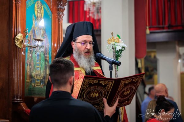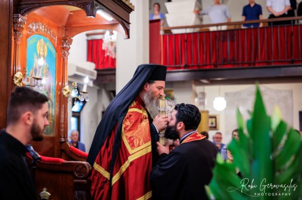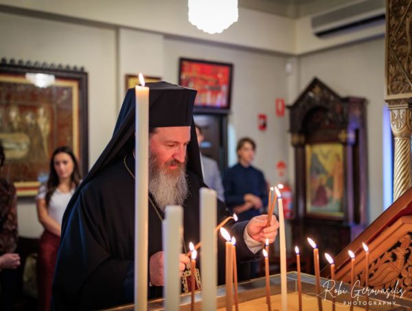 Στο τέλος της ακολουθίας, ο Θεοφιλέστατος κ. Ελπίδιος μοίρασε από ένα μικρό γλυκό στους 130 πιστούς που ήταν παρόντες, για να τους ευχαριστήσει για τις ευχές τους για την ονομαστική του εορτή. Ακολούθως, η Ενορία παρέθεσε δείπνο στην παρακείμενη αίθουσα προς τιμήν του Επισκόπου Πέρθης.