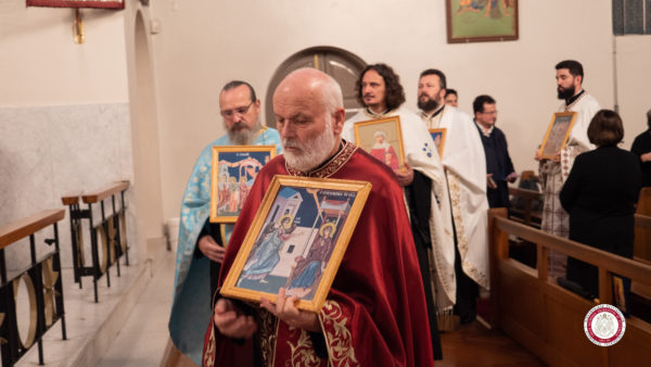 Στην Ακολουθία χοροστάτησε ο Σεβασμιώτατος Μητροπολίτης Σεβαστείας κ. Σεραφείμ, συμπαραστατούμενος από ιερείς της Σερβικής, της Ρουμανικής και της Αντιοχιανής Εκκλησίας, με τη συμμετοχή του Ιερού Κλήρου της Ιεράς Αρχιεπισκοπής Αυστραλίας από την πόλη του Σύδνεϋ.