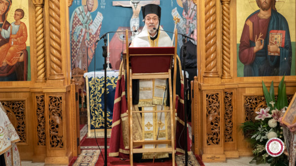 Στο τέλος του Εσπερινού, ο Σεβασμιώτατος κ. Σεραφείμ απευθύνθηκε στο εκκλησίασμα, διαβιβάζοντας καταρχάς τις ευχές του Σεβασμιωτάτου Αρχιεπισκόπου Αυστραλίας κ. Μακαρίου, ο οποίος βρίσκεται στο Φανάρι ως μέλος της Αγίας και Ιεράς Συνόδου του Οικουμενικού Πατριαρχείου.
