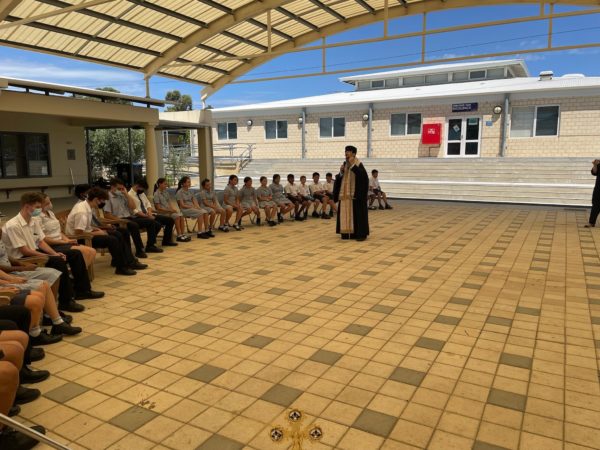 Ο Θεοφιλέστατος κ. Ελπίδιος μετέφερε στους μαθητές και το προσωπικό τις ευλογίες του Σεβασμιωτάτου Αρχιεπισκόπου Αυστραλίας κ. Μακαρίου και τις καλύτερες ευχές του για τη σχολική χρονιά που έρχεται.
