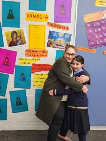 Τη Δευτέρα 14 Αυγούστου 2023, ημέρα που ο Σεβασμιώτατος Αρχιεπίσκοπος Αυστραλίας κ. Μακάριος επισκέφθηκε τις εγκαταστάσεις του Κολλεγίου και τέλεσε Ιερά Παράκληση προς την Παναγία, μετά το τέλος της Ακολουθίας, μέλη του Διοικητικού Συμβουλίου του σχολείου παρουσίασαν τη θεματική στους παρευρισκόμενους, τονίζοντας τη σημασία της ενασχόλησης των μαθητών με τον ιερό πρόσωπο της Θεομήτορος.