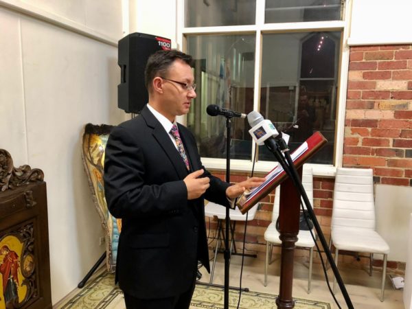 Ανάμεσα στους επισήμους βρισκόταν ο Γενικός Πρόξενος της Ελλάδας στη Μελβούρνη, κ. Εμμανουήλ Κακαβελάκης, ο οποίος στον σύντομο χαιρετισμό που απηύθυνε, εξέφρασε τον ενθουσιασμό του για το περιεχόμενο και τα αντικείμενα που βρίσκονται στην έκθεση. Επίσης, τόνισε τον σημαντικό ρόλο της Εικόνας για τον πιστό, ενώ αναφέρθηκε στον Άγιο Ιωάννη τον Χρυσόστομο.