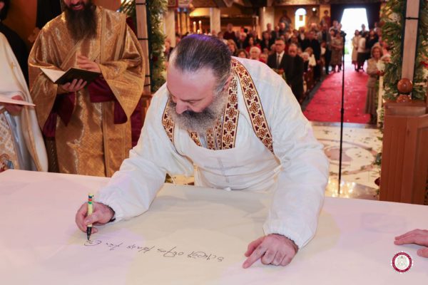 Κατακλείοντας, ο Αρχιεπίσκοπος κ. Μακάριος απευθύνθηκε με πατρικούς λόγους στον Ιερατικώς Προϊστάμενο, π. Νικόλαο Γεωργίου, και τον συνεχάρη για την αφοσιωμένη διακονία του στην Ενορία του North Balwyn. Ενθυμήθηκε με συγκίνηση, μάλιστα, ότι μετά την άφιξή του στην Αυστραλία, το 2019, η πρώτη εις Πρεσβύτερον χειροτονία, την οποία τέλεσε, ήταν του άλλοτε Διακόνου του μακαριστού Αρχιεπισκόπου Στυλιανού, του π. Νικολάου, ανήμερα της εορτής της Μεταμορφώσεως του Σωτήρος Χριστού. Διέκρινε δε με πατρική ευαρέσκεια ότι στα τέσσερα περίπου έτη που έχουν μεσολαβήσει από τότε, ο π. Νικόλαος εργάστηκε άοκνα, επιτέλεσε σημαντικό έργο στην Ενορία και κυρίως αγάπησε τον λαό της και αγαπήθηκε εξίσου από τους ενορίτες του. Στο πρόσωπο, τέλος, του Ιερατικώς Προϊσταμένου, ο Σεβασμιώτατος ευχαρίστησε όλα τα μέλη του Διοικητικού Συμβουλίου και της Φιλοπτώχου Αδελφότητος της Ενορίας, καθώς και όσους συνεισφέρουν, από οποιοδήποτε μετερίζι, για τη συνεχιζόμενη πρόοδο και ανάπτυξή της.