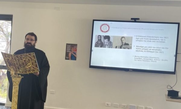 Με την έναρξη της περιόδου του Δεκαπενταυγούστου, μετά το πέρας της Αρχιερατικής Θείας Λειτουργίας υπό του Θεοφιλεστάτου Επισκόπου Κυανέων κ. Ελπιδίου, πραγματοποιήθηκε στη μεγάλη αίθουσα εκδηλώσεων στην Αρχιεπισκοπική Περιφέρεια Πέρθης, κατόπιν προτροπής και ευλογίας του Σεβασμιωτάτου Αρχιεπισκόπου Αυστραλίας κ.κ. Μακαρίου, ομιλία για την επέτειο των 200 χρόνων από την Ελληνική Επανάσταση, με θέμα: «Η Προσφορά του Κλήρου κατά τη διάρκεια της Οθωμανικής κατοχής στην Ελλάδα», από τον Ιερολογιώτατο Ιεροδιάκονο κ. Αθανάσιο Αθανασιάδη.