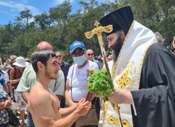 Κατόπιν, ο Θεοφιλέστατος μετέβη στην ακτή Plantation Reserve, όπου ευλόγησε τα ύδατα και πραγματοποίησε την κατάδυση του Τιμίου Σταυρού. Τον Σταυρό ανέσυρε ο 17χρονος Δημήτριος Παπαδημητρίου, ο οποίος φοιτά στο Κολλέγιο της Αγίας Ευφημίας στο Bankstown του Σύδνεϋ.