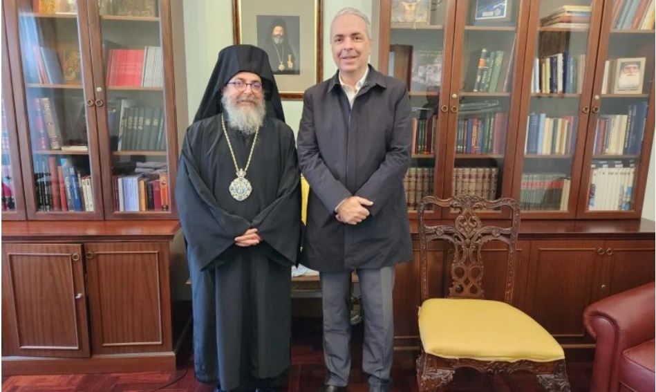 Τον κ. Λυγερό υποδέχθηκε ο Θεοφιλέστατος Επίσκοπος Σωζοπόλεως κ. Κυριακός, Αρχιερατικός Επίτροπος Μελβούρνης, και είχαν μακρά συνομιλία για θέματα κοινού ενδιαφέροντος.