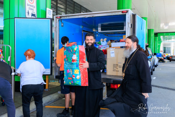 Ο Θεοφιλέστατος μετέφερε τις ευλογίες του Σεβασμιωτάτου Αρχιεπισκόπου Αυστραλίας κ. Μακαρίου στο προσωπικό του νοσοκομείου, ευχαρίστησε τους εθελοντές της Εκκλησίας που βοήθησαν στη συλλογή των παιχνιδιών και στη μεταφορά τους στο νοσοκομείο, και, τέλος, ευχήθηκε σε όλους καλά Χριστούγεννα.