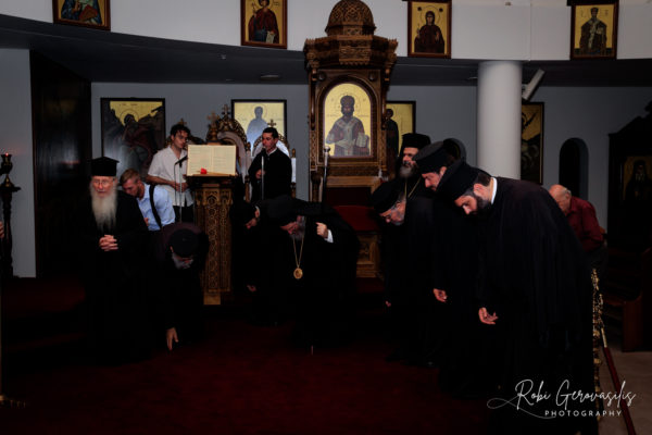Προ της ολοκληρώσεως της Ακολουθίας, ο Θεοφιλέστατος Επίσκοπος κ. Ελπίδιος ανέγνωσε την Εγκύκλιο του Σεβασμιωτάτου Αρχιεπισκόπου Αυστραλίας κ.κ. Μακαρίου περί της «Μετανοίας», ενόψει της ενάρξεως της Αγίας και Μεγάλης Τεσσαρακοστής.