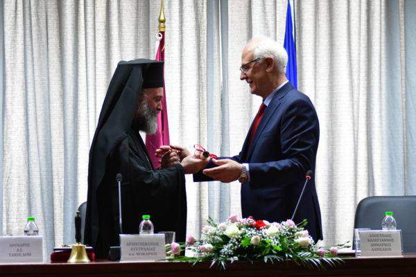 Μέσα σε κλίμα συγκίνησης πραγματοποιήθηκε η τελετή ανακήρυξης του Αρχιεπισκόπου Αυστραλίας κ. Μακαρίου σε Επίτιμο Δημότη Δήμου Λαρισαίων. «Την τιμή αυτή την αφιερώνω στους χιλιάδες Έλληνες της Αυστραλίας», τόνισε ο Σεβασμιώτατος.