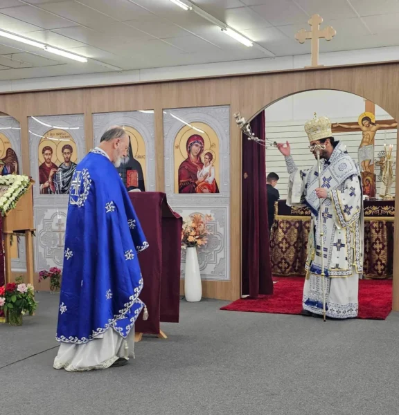 Τόσο στον Εσπερινό, τη Δευτέρα, 14 Αυγούστου, όσο και στον Όρθρο και Θεία Λειτουργία, ανήμερα του Δεκαπενταύγουστου, χοροστάτησε, εκ προσώπου του Σεβασμιωτάτου, ο Θεοφιλέστατος Επίσκοπος Σινώπης κ. Σιλουανός και προεξήρχε της επακολουθησάσης Θείας Λειτουργίας πλαισιούμενος υπό του ιερατικώς προϊσταμένου π. Χρήστου Τσορακλίδη. Σ’ όλες τις ακολουθίες συμπροσευχήθηκε με κατάνυξη μεγάλος αριθμός πιστών, στους οποίους ο Θεοφιλέστατος μετέφερε τις ευλογίες, τις πατρικές ευχές και την ευαρέσκεια του Σεβασμιωτάτου για το έργο που επιτελείται στην εν λόγω ενορία, ευχαριστώντας τον π. Χρήστο, τα περί αυτόν Συμβούλια και Φιλόπτωχο Αδελφότητα, καθώς και τον λαό του Θεού που στηρίζει τη νέα ενορία. Την κυριώνυμο ημέρα της Κοιμήσεως της Υπεραγίας Θεοτόκου αναγνώστηκε η εγκύκλιος του Αρχιεπισκόπου γι’ αυτή την μεγάλη Θεομητορική εορτή, καθώς και η παράκλησή Του για τη στήριξη της Θεολογικής Σχολής του Αποστόλου Ανδρέου που αποτελεί το καύχημα της Ιεράς Αρχιεπισκοπής Αυστραλίας.