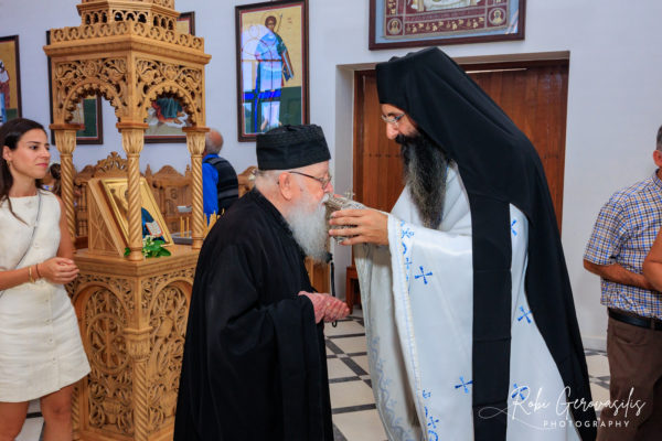 Μετά τη Θεία Λειτουργία, προσφέρθηκε κέρασμα στην τραπεζαρία της μονής.