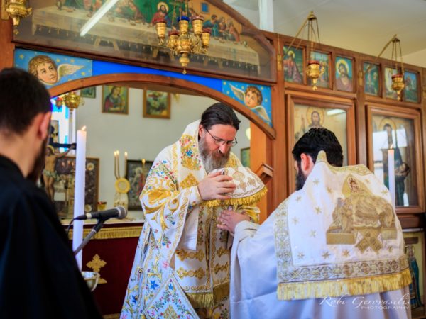 Την επομένη, ο Θεοφιλέστατος Επίσκοπος κ. Ελπίδιος προεξήρχε της Θείας Λειτουργίας, η οποία ολοκληρώθηκε με τη λιτάνευση της ιεράς εικόνας πέριξ του Ιερού Ναού. Στη συνέχεια, παρατέθηκε εορταστικό γεύμα, στη διάρκεια του οποίου διάφορες οικογένειες και σύλλογοι ανέλαβαν τη συγκέντρωση 11.000 δολαρίων για την αγορά πέντε νέων κλιματιστικών για την Ελληνορθόδοξη εκκλησία του Geraldton.