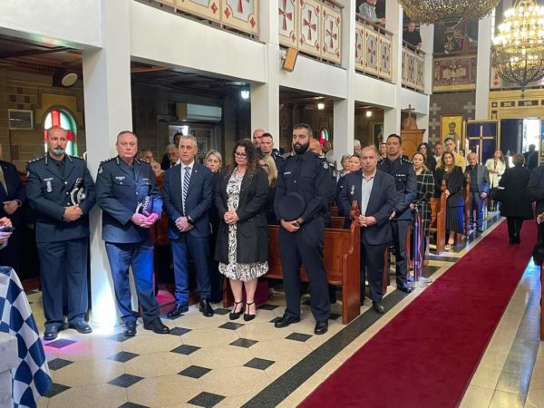 Με την ευλογία του Σεβασμιωτάτου Αρχιεπισκόπου Αυστραλίας κ. Μακαρίου, την Κυριακή, 20 Οκτωβρίου 2024, στον Ιερό Ναό του Αγίου Ιωάννου του Προδρόμου, στο Carlton της Μελβούρνης, τιμήθηκε η μνήμη του Αγίου Αρτεμίου του Μεγαλομάρτυρος, Προστάτη των Αστυνομικών, με την τέλεση της Θείας Λειτουργίας και έπειτα Δοξολογίας. Παρέστησαν εκπρόσωποι τόσο από τις πολιτειακές, όσο και από τις ομοσπονδιακές υπηρεσίες της Αστυνομίας.
