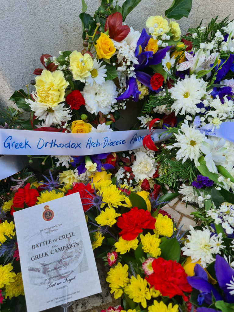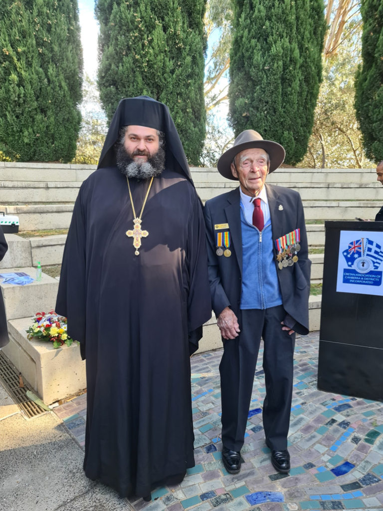 Στο Ελληνοαυστραλιανό Μνημείο της Καμπέρας τελέστηκε Τρισάγιο από τον Πανοσιολογιώτατο Αρχιμανδρίτη κ. Πρόχορο Αναστασιάδη, Αρχιεπισκοπικό Επίτροπο Καμπέρας και Τασμανίας, πλαισιούμενο από τον π. Πέτρο Κηπουρό και τον π. Κωνσταντίνο Κωστάκο, ενώ παρέστησαν, μεταξύ άλλων, ο Πρέσβης της Ελλάδας στην Αυστραλία, κ. Γεώργιος Παπακώστας, η Ύπατη Αρμοστής της Κυπριακής Δημοκρατίας, κ. Μάρθα Μαυρομμάτη, οι Ύπατοι Αρμοστές της Βρετανίας και της Νέας Ζηλανδίας, ο κ. Less Cook, ο οποίος είχε λάβει μέρος στη Μάχη της Κρήτης, καθώς και εκπρόσωποι της Κυπριακής Κοινότητας, της Ahepa και άλλων ομογενειακών σωματείων.